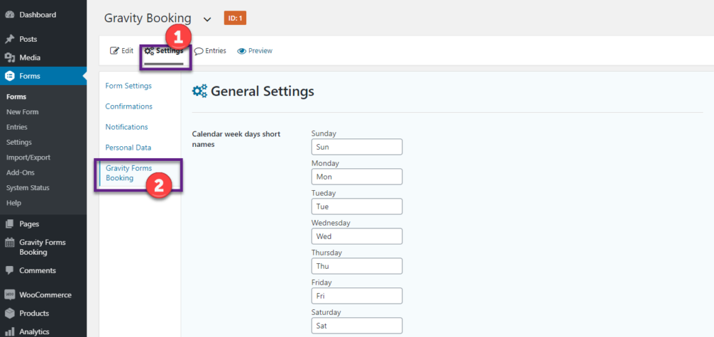 Now, go to Forms → Settings and click on the ‘Gravity Forms Booking’ option available at the last of all the options.